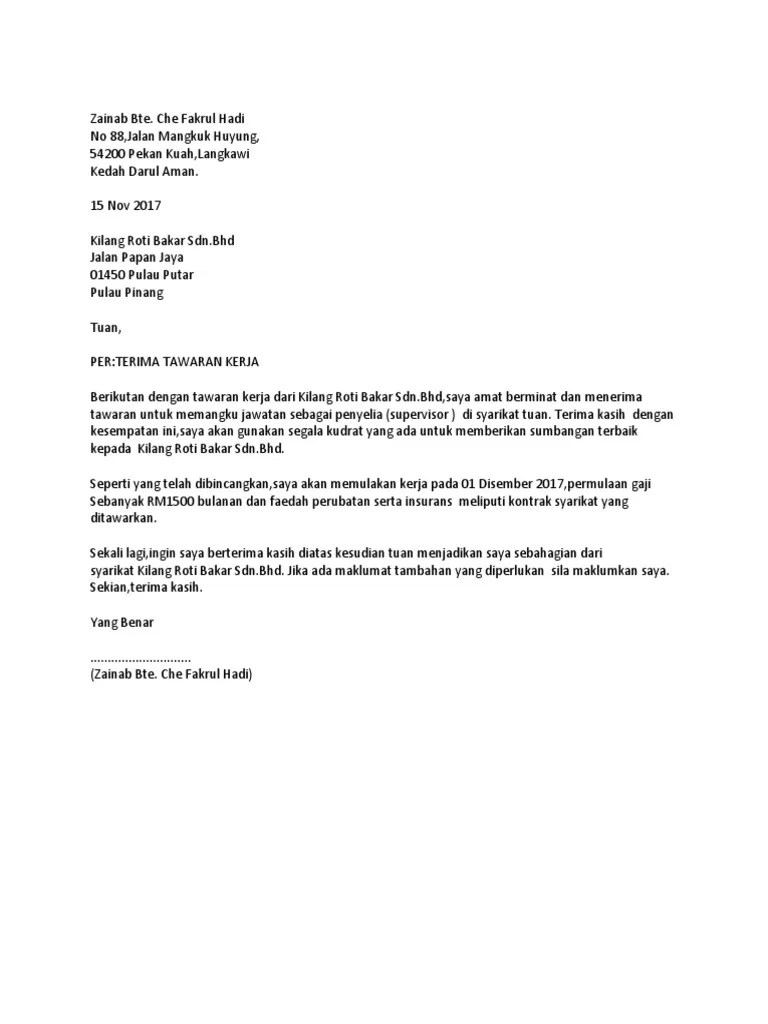 Surat lamaran kerja adalah sebuah surat yang dibuat untuk keperluan permohonan kerja di sebuah perusahaan, kantor, atau instansi. Surat tawaran kerja disediakan kepada calon yang telah anda pilih untuk jawatan tersebut. Sampel surat tawaran pekerjaan untuk pekerja kerjaya awal 2021. Contoh surat terima tawaran kerja. Terlebih saat melihat anak didik kita bisa berprestasi. Berikut adalah contoh bagaimana dengan sopan menolak sebuah tawaran pekerjaan. Kami juga menyertakan simulasi perhitungan laba yang bisa anda dapatkan. 5 contoh surat pengesahan majikan jawatan portal malaysia. Saat kita membutuhkan dana untuk keperluan, kita bisa mengajukan pinjaman kepada bank atau koperasi. Tempat dan tanggal penulisan surat, nama perusahaan yang dituju, salam hormat. Surat tawaran kerja maklumat peribadi nama : Jangan ucapkan 5 kalimat ini saat interview kerja! Tawaran pembiayaan kerja kontrak oleh mara.