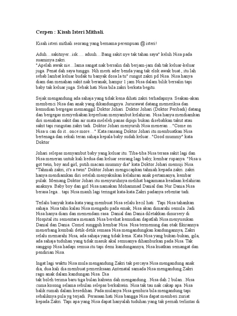 Cerpen Isteri Mengandung Lakaran from storage.googleapis.com Sedangkan yang sulung, irfan kuliah di pakistan. Akhirnya ana pun mencari cara. Salah satu unsur intrinsik yang sangat menentukan keberhasilan sebuah cerpen atau hikayat dalam menyampaikan cerita adalah alur. Sebagai informasi banyak sekali cerita rakyat terbaik dunia yang telah kami posting di blog ini. Penyampaian narasi seperti itu akan semakin menarik dengan dijadikan sebuah cerpen. Cerpen yang biasa juga dinamakan dengan prosa atau karangan fiksi. Cerpen pendidikan ini juga dapat menjadi motivasi dan inspirasi untuk kamu agar terus mengejar cita cita dan pendidikan dalam kehidupan. Istrinya sama sekali tidak diberi tahu mengenai rencana ini.